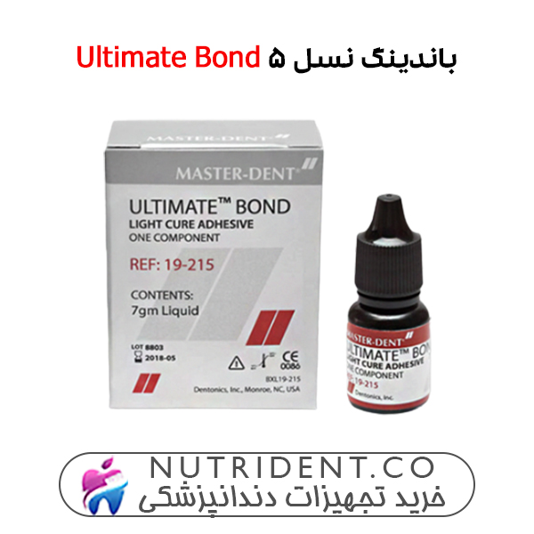 باندینگ نسل 5 Ultimate Bond کمپانی Master-Dent آمریکا یک چسب دندانی تکجزئی و نورپخت است که برای اتصال شیمیایی به عاج، مینا و تمامی مواد ترمیمی طراحی شده است. این باندینگ با ترکیب رزینهای متاکریلاتی و HEMA (هیدروکسیاتیلمتاکریلات)، خواص هیدروفیلیک مطلوبی را ایجاد میکند. بدون نیاز به مخلوطسازی، استفاده آسانی دارد و در کاهش میکرو لیکیج و پوسیدگی ثانویه مؤثر است. همچنین، برای تسکین حساسیت دندانی و درمان سطوح ریشهای مناسب است.